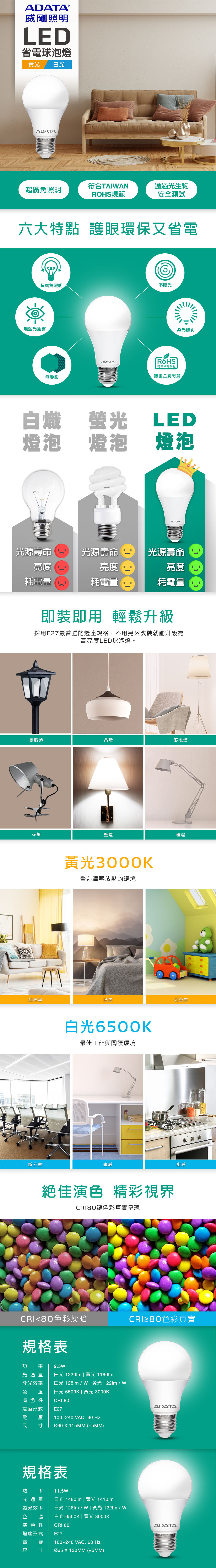 【ADATA】LED Light Bulb 11.5W (White/Yellow)