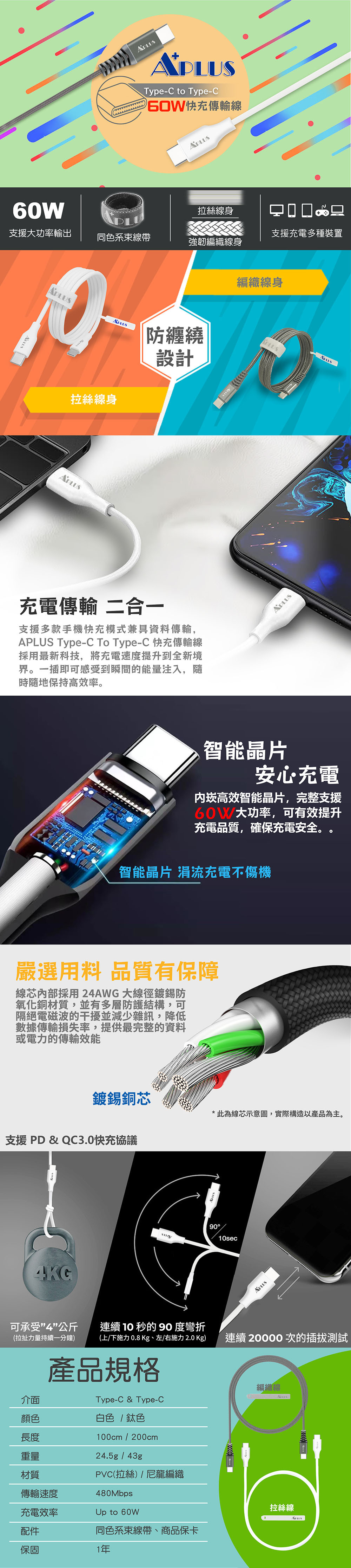 【APLUS】Type-C to C 60W Fast Charging Cable (1M/2M) Titanium