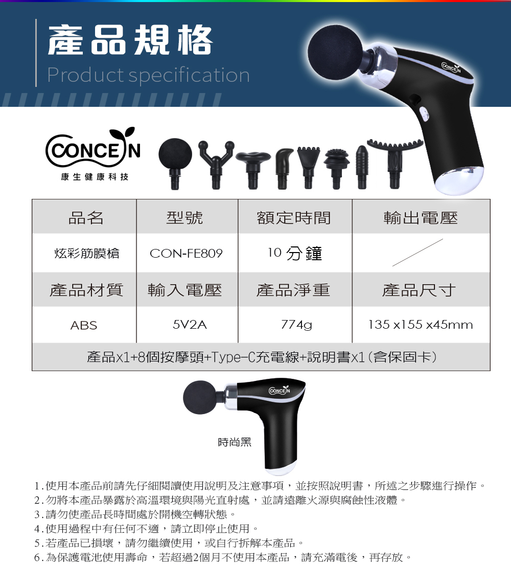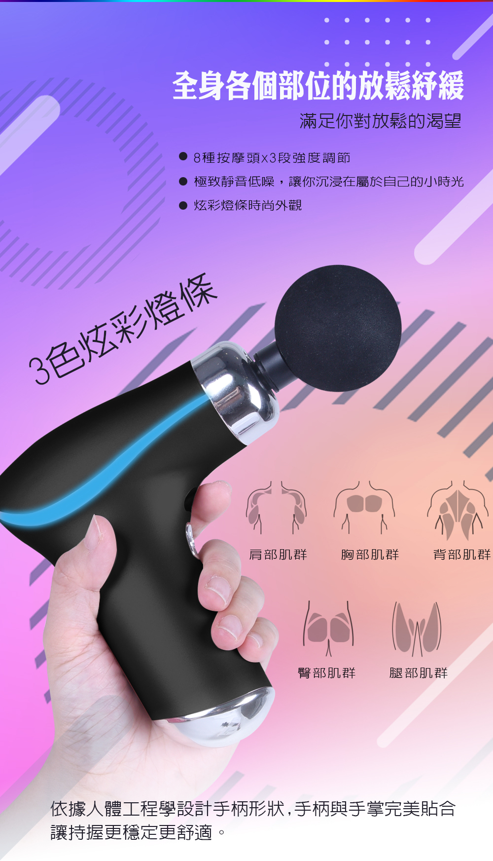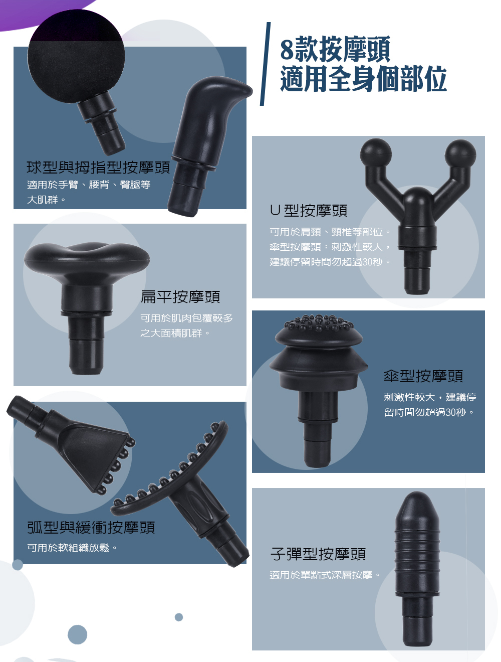 Massage gun*1/Massage heads*8/TpyeC cable*1/Guidebook*1