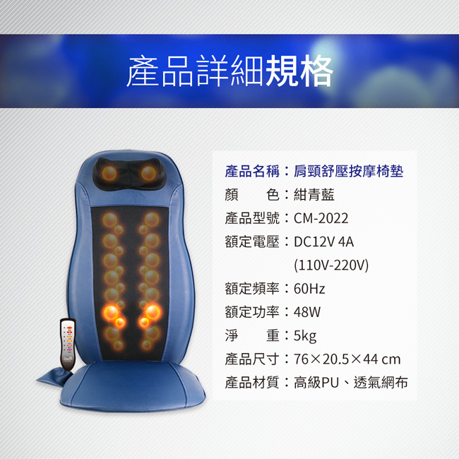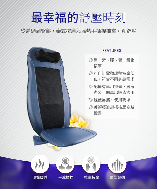 產品名稱:泰式SPA 肩頸舒壓按摩椅墊