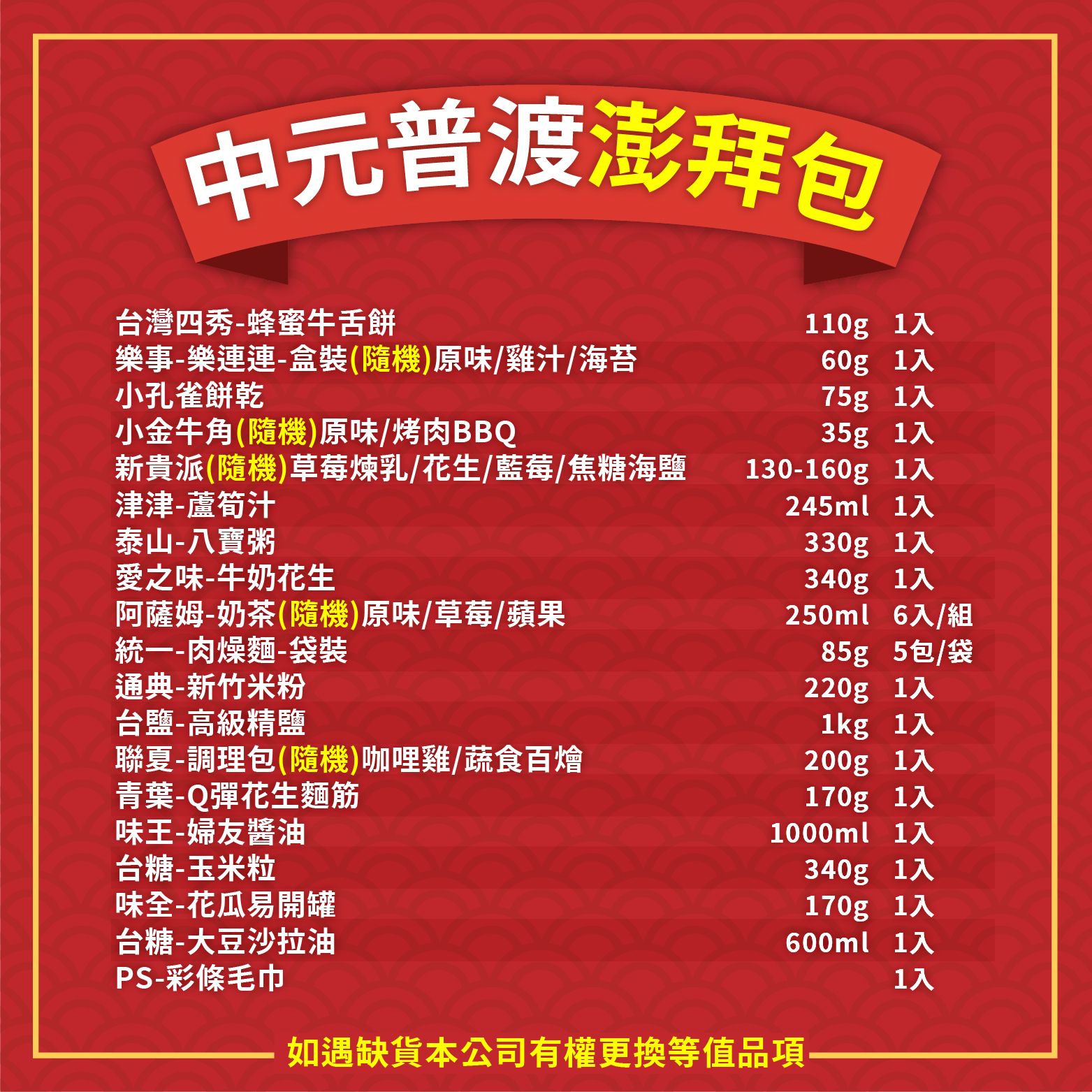 ⭐適合中/大家庭,宮廟統拜,油鹽醬油都有⭐