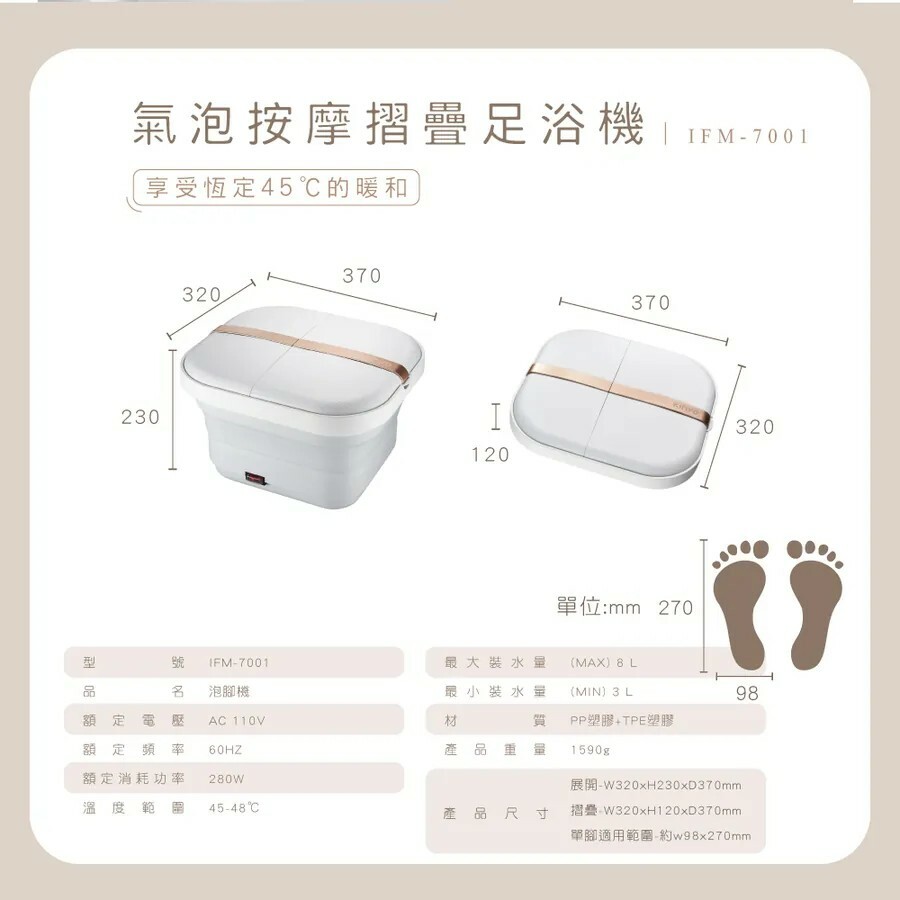 【KINYO】Foldable Feet Baths & Spas (IFM-7001)