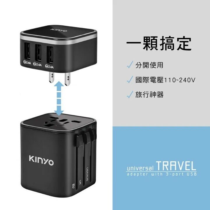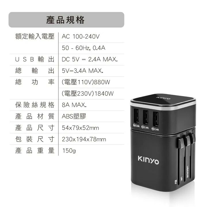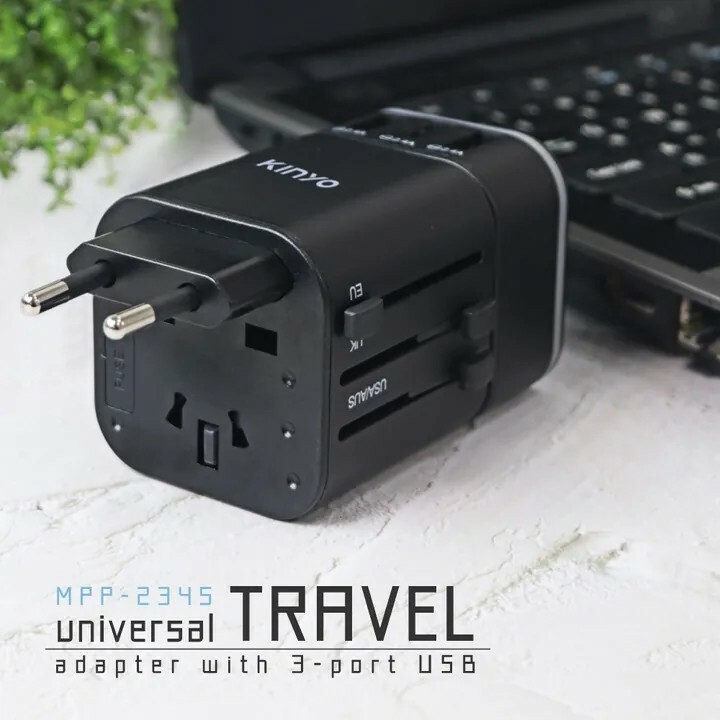 ⭐ 3 USB ports and 4 types of international plugs in one.