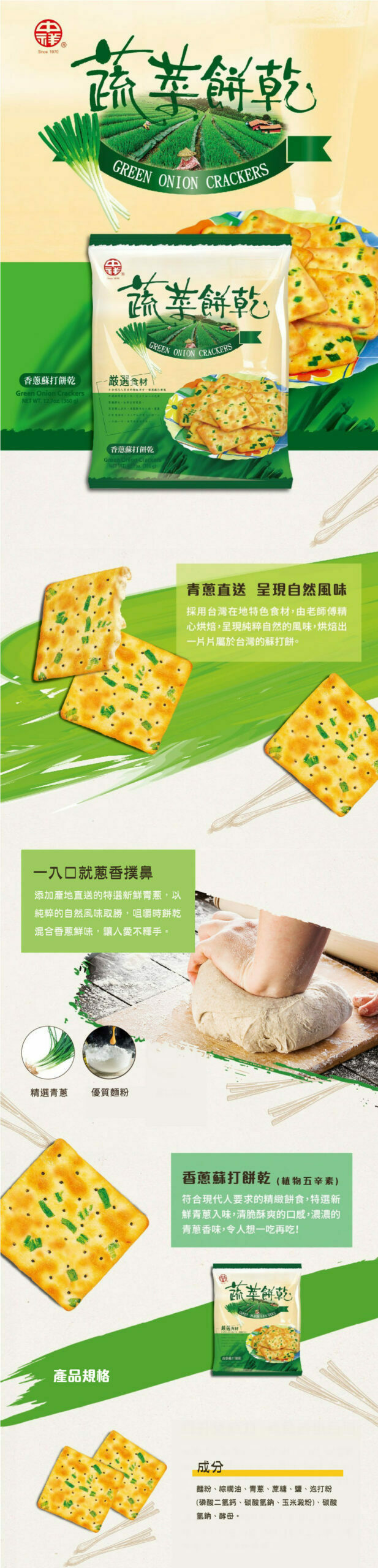 【Chung Hsiang】Green Onion Crackers 300g (30g*10入)