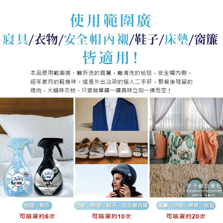 (2)西裝、制服、鞋子、安全帽內襯,可噴灑約10次