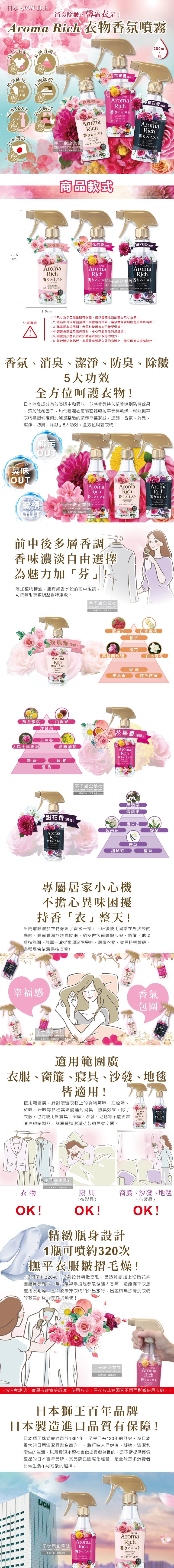 ●品名:Aroma Rich長效型消臭除皺衣物香氛噴霧