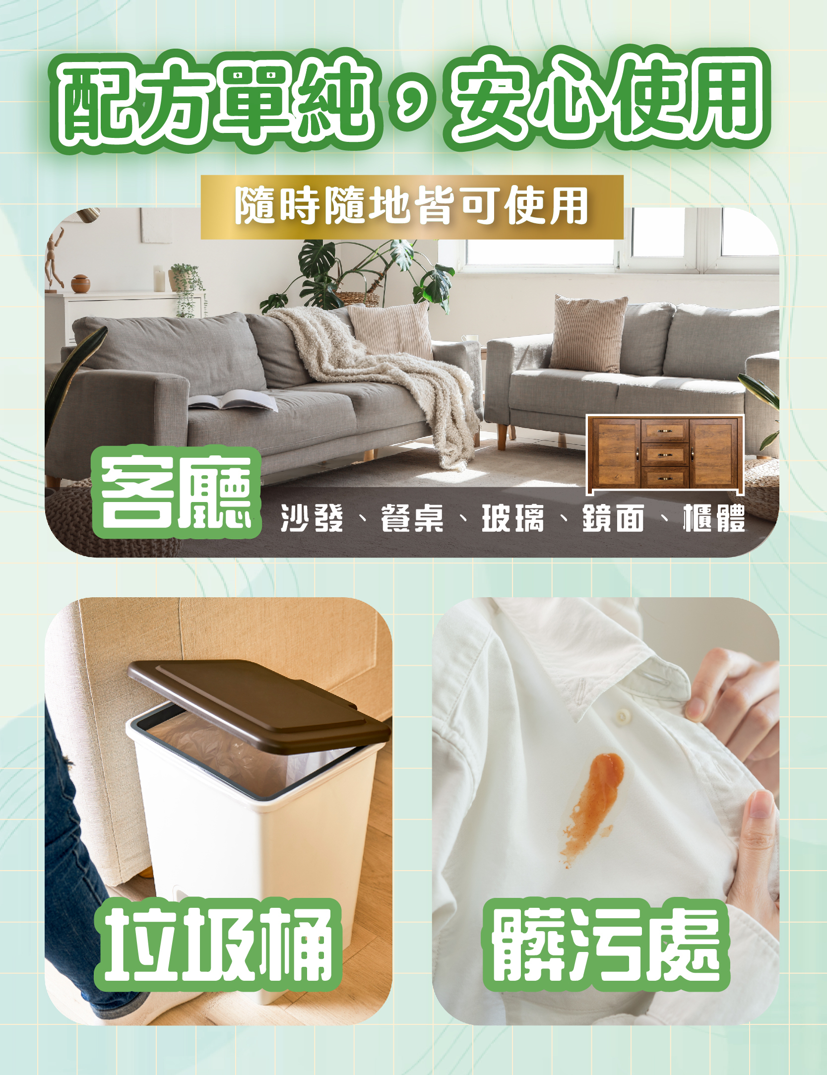 - 居家生活空間(客廳、餐桌、玻璃、鏡面、櫃體、沙發等髒污處)
