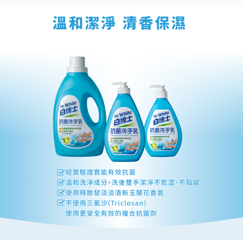 ✔使用白博士抗菌洗手乳洗手可達99.9%抗菌效果。