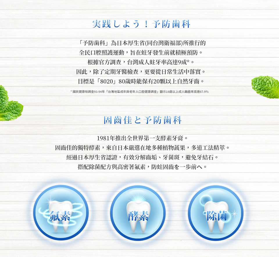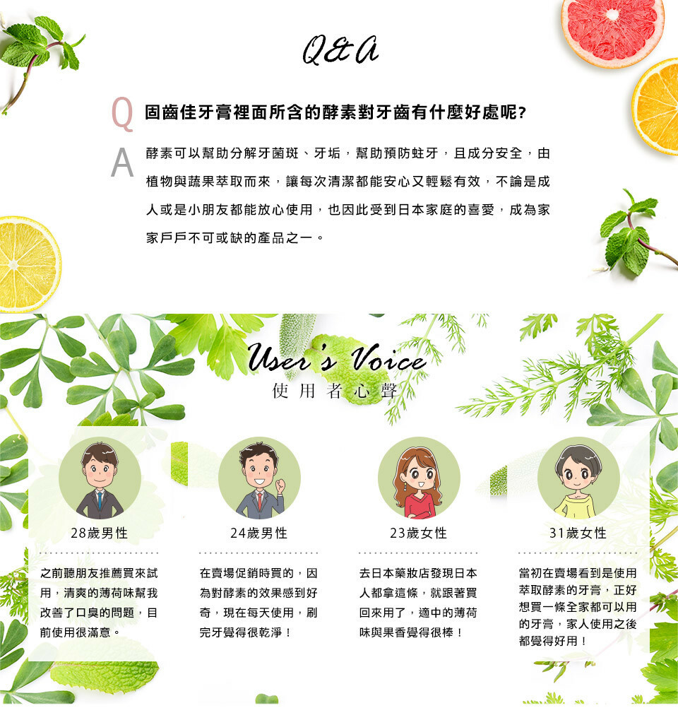 ✔ 日本天然萃取酵素配方:日本厚生省認證,唯一有效齒垢分解酵素,幫助分解牙菌斑、去除牙漬。