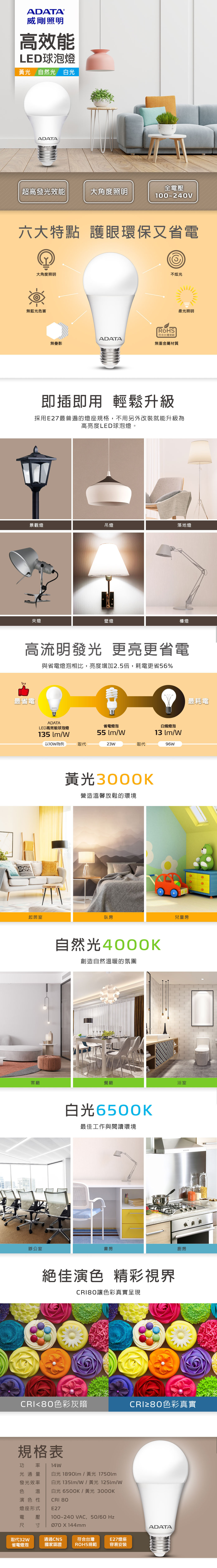 【威剛】14W LED 球燈泡 (白光/黃光, 新版135流明)