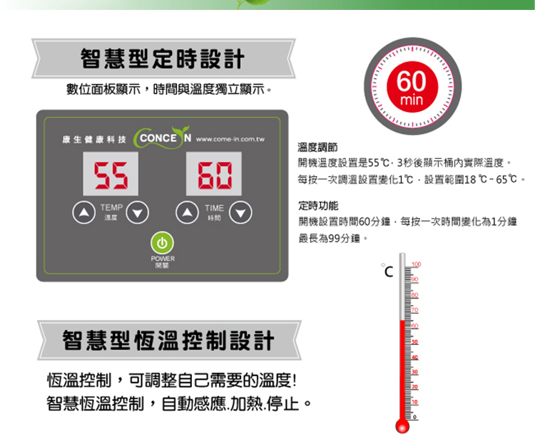 ✔ 智慧恆溫18-65℃定時1-99分鐘