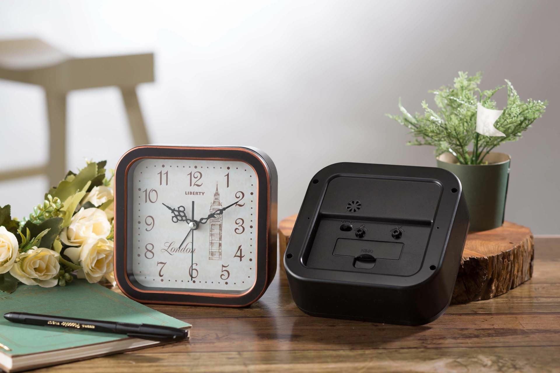 ✔ 方形的鐘面繪製倫敦大笨鐘圖案,簡潔大方時間一目了然。