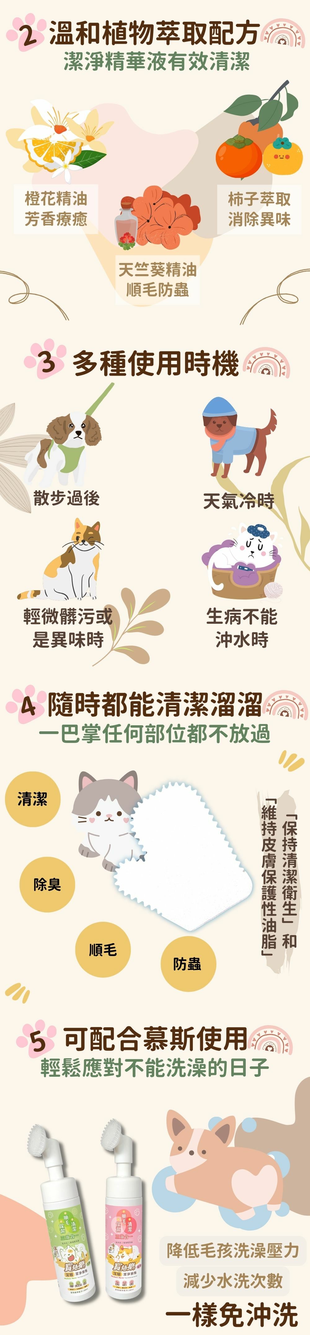 ⭐可直接清潔寵物身體、腳掌、耳朵、屁股,保持寵物清潔