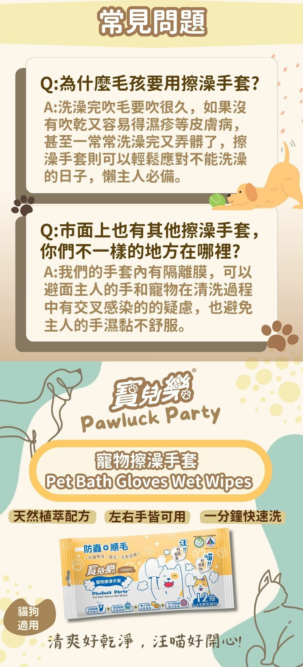 【用 途】每日寵物居家清潔、外出散步後、露營玩耍後...等身體及足部之清潔均適用