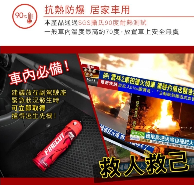 ✔產品通過SGS耐熱防爆測試(可耐高溫至90°C),放在高溫車室內不會發生爆裂,並可正常使用。