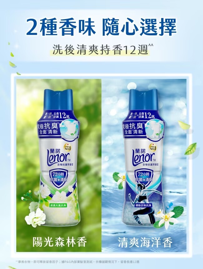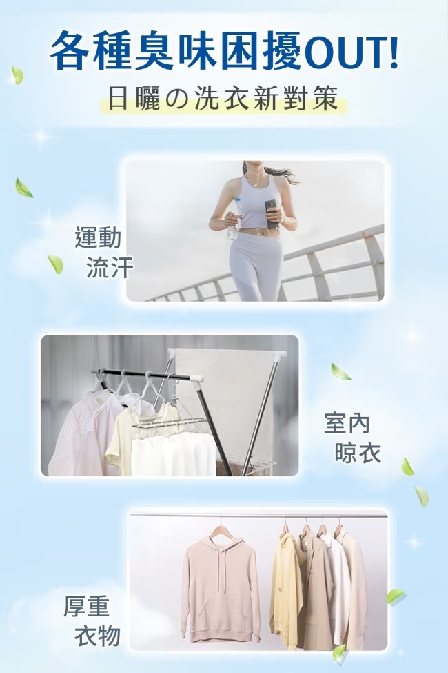 ▶ 運動衣物抗臭-清爽海洋香/潮濕天氣抗臭-陽光森林香