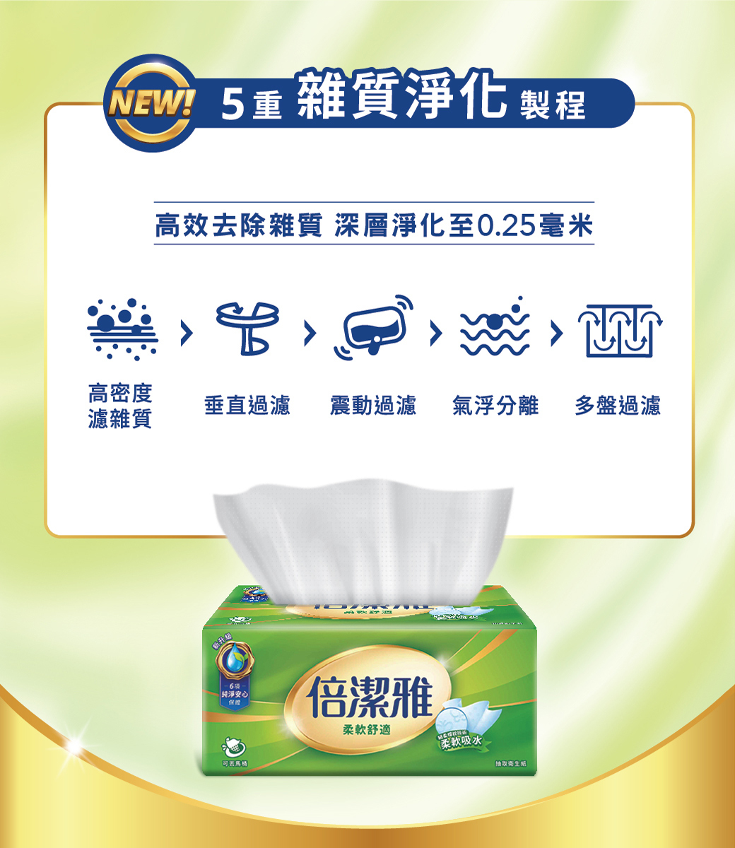 ✔全新5重雜質淨化製程,高效去除雜質,深層淨化至0.25毫米