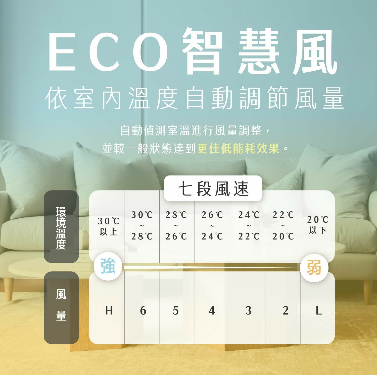 ⭐ECO智慧風,依室內溫度自動調調節風量