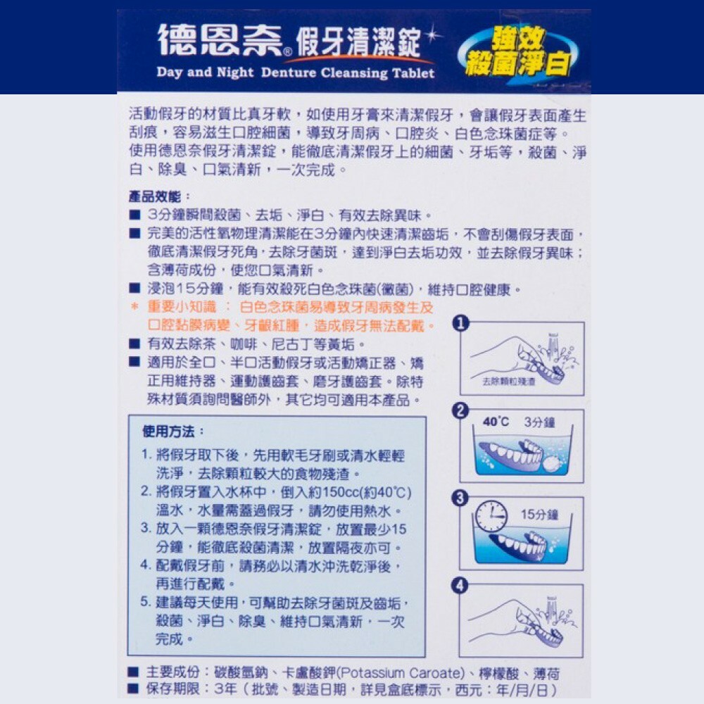 【德恩奈】假牙清潔錠 買一送一 共48片 (24片/盒)