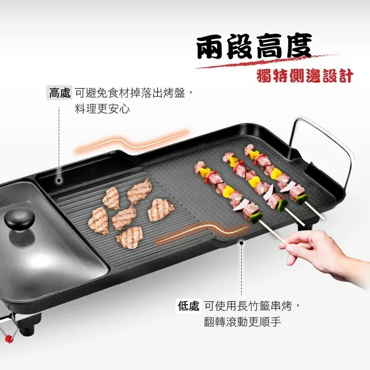 ✔超大面積烤盤+薄型機身設計,家庭聚餐首選,可同時進行多種料理