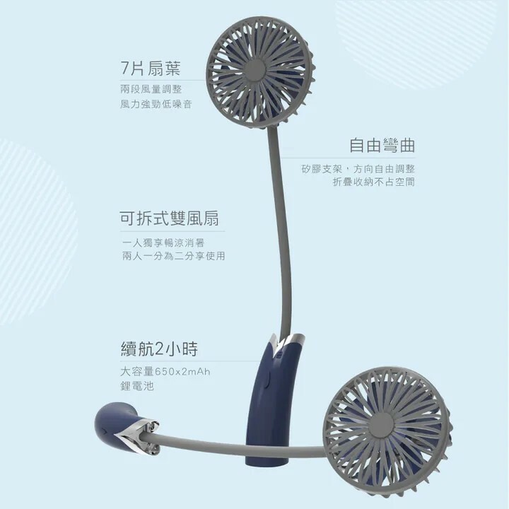 ✔可拆式雙風扇-一人獨享暢涼消暑,兩人一分為二分享使用。