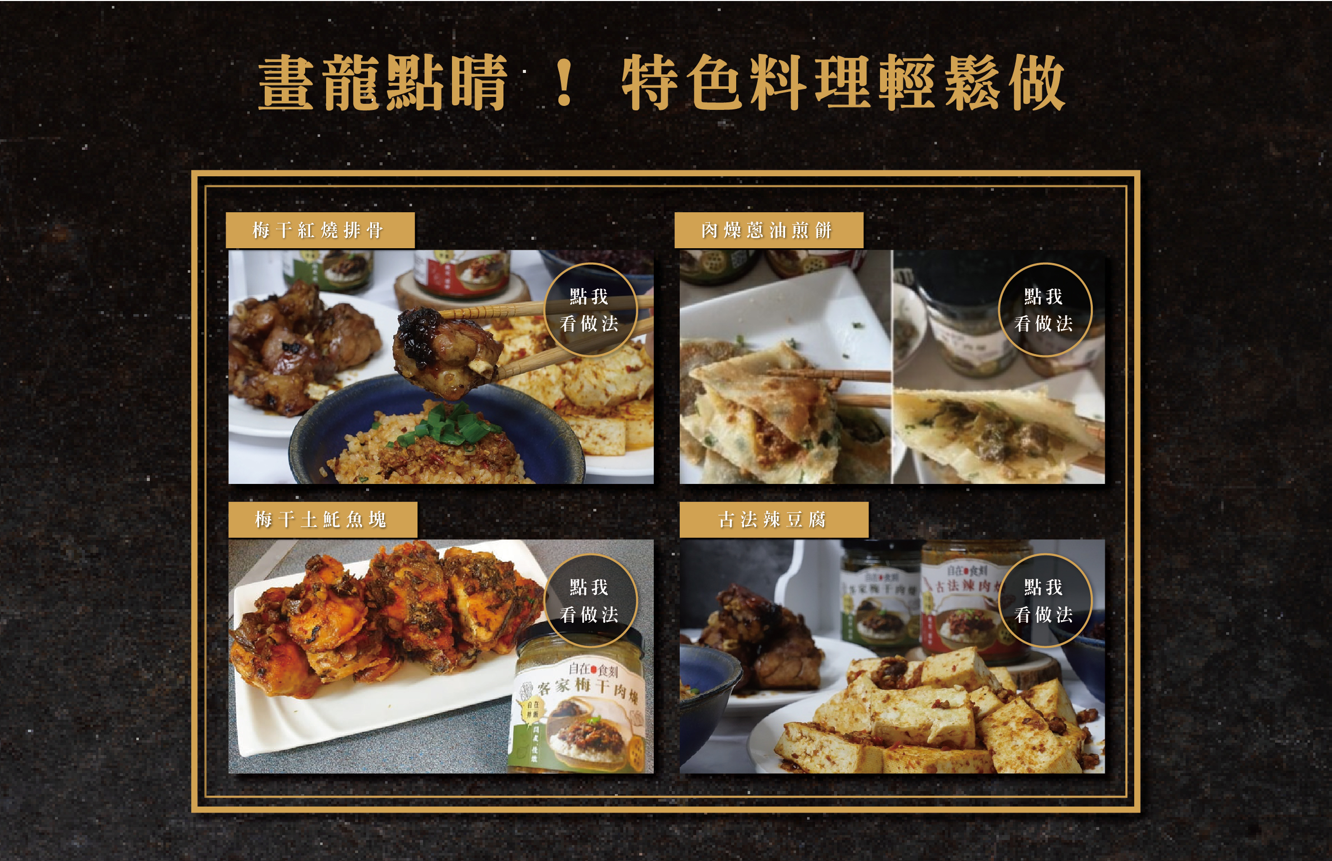 (客家梅干1、古法辣肉1、剝皮酸辣1、黑米3、香米3)