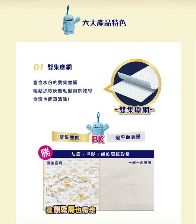 ✔雙集塵網 輕鬆抓取灰塵毛髮與餅乾屑