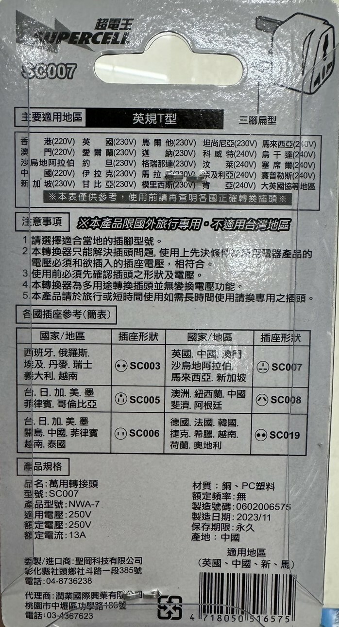 ⚠️本商品僅為轉換插頭功能,並無變換電壓功能,使用前請先確認當地電壓避免電器損壞。