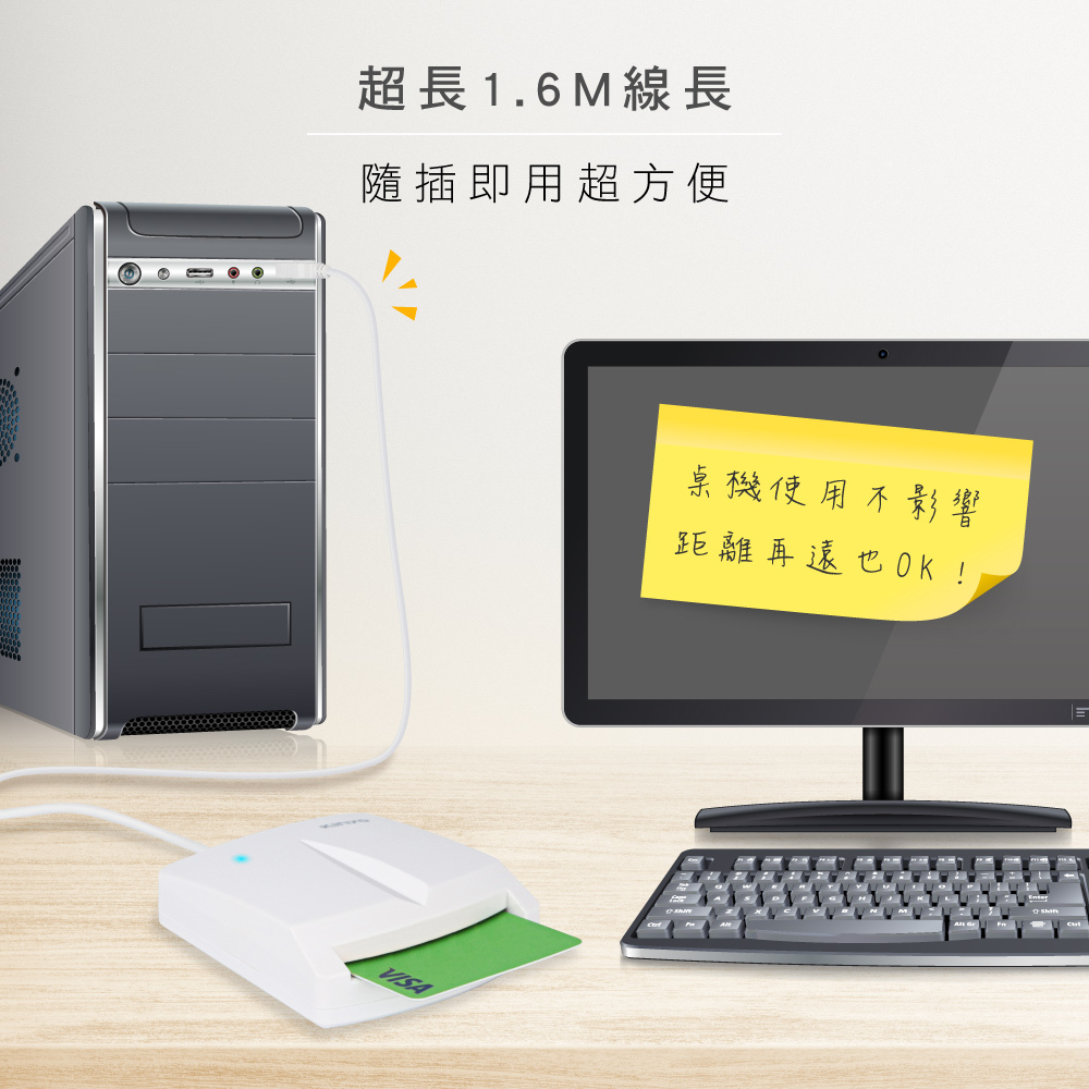✔ 貼心LED指示燈,讀卡狀況一目了然.當偵測到晶片時,指示燈會亮起。