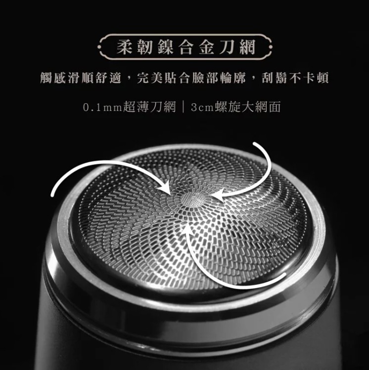 ✔螺旋刀網 X 3cm大網面,刮鬍俐落、360度無死角。