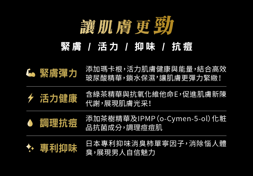 ✔ 抗菌緊緻、瑪卡活力緊膚+日本專利抑味科技