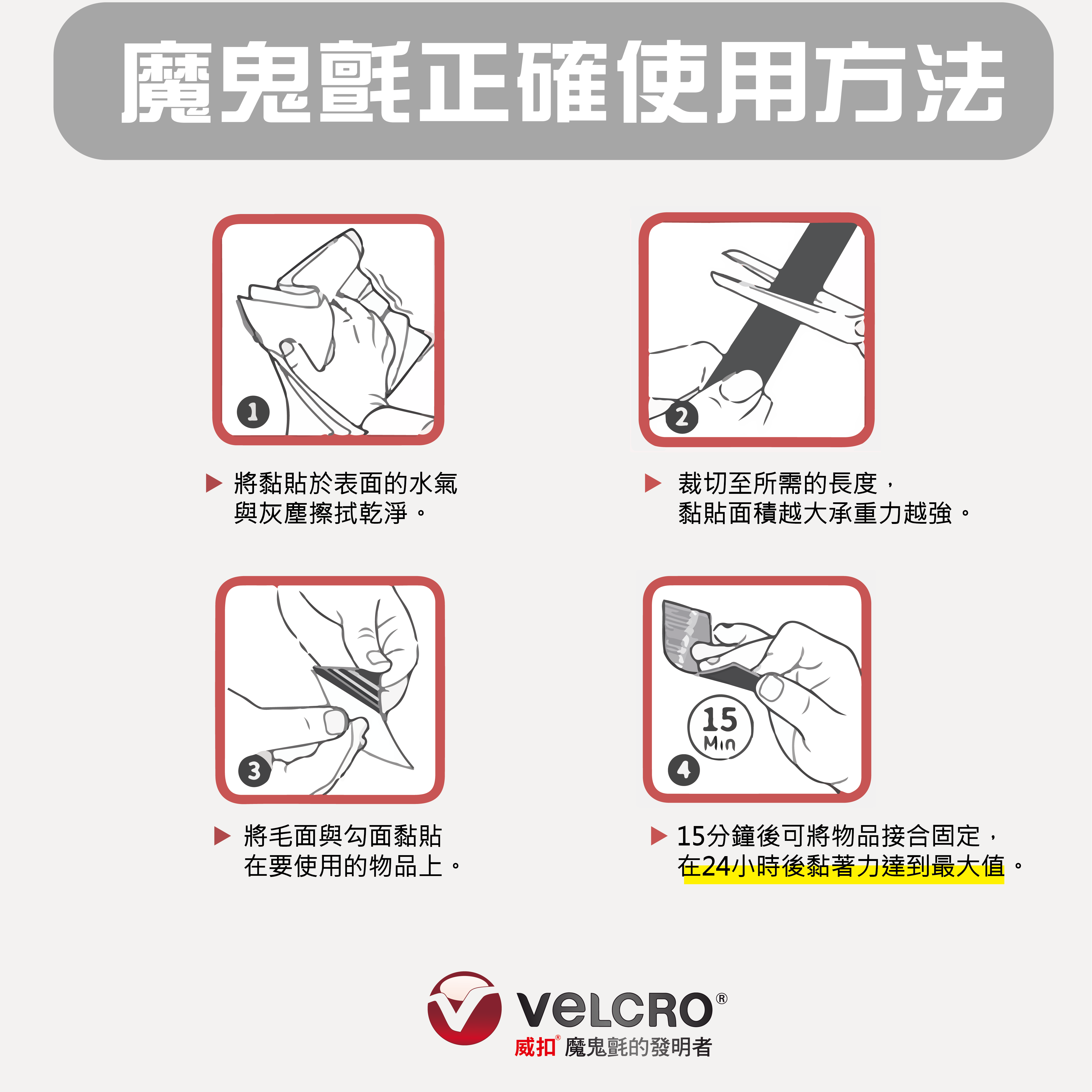 ✔VELCROR威扣R魔鬼氈極致強力系列提供更強的固定力。